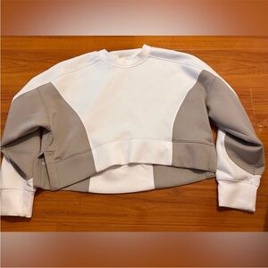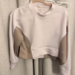 Abercrombie & Fitch YPB neoKNIT colorblock crewneck crop sweatshirt size XS tan