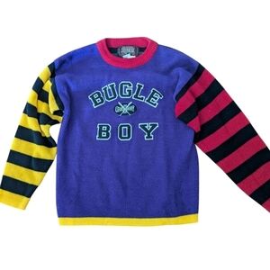 Vtg 90s Bugle Boy Purple/Red/Black Yellow Striped Embroidered Sweater Sz xS