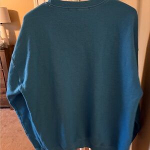 Blue sweatshirt with bold graphic. Soft and cozy fabric.