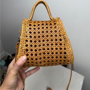 TAGS: resort, vacation, beachy, beach, casual, pool, spring, summer, travel, rattan, natural fiber, woven, retro, crossbody, hands free, dainty, elegant