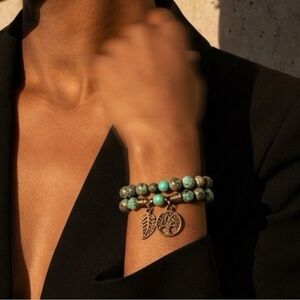 Earthroot Charm: African Turquoise Bracelet Tree of Life and Leaf Bracelet Stack