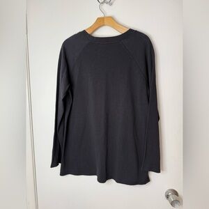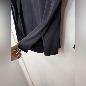 Eileen Fisher, black long sleeve pop over top with side slits. S