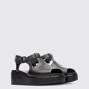 Camper Black Leather Platform Sandals