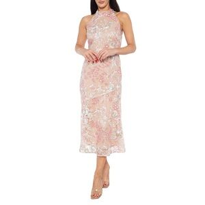 Shine all night in this sequin cocktail dress. This fitted midi-length sheath dazzles with shimmering sequins from top to bottom. Featuring a high halter neckline for a modern, elegant touch, this sleek silhouette hugs your curves in all the right places—perfect for cocktail parties, celebrations, or festive evenings out.
