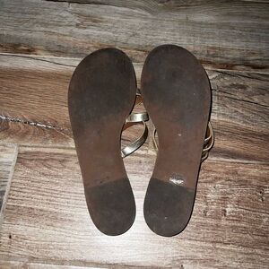 Tory Burch Metallic Gold Patos Strappy Leather Slide Sandals
