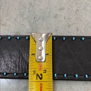 Preowned beautiful genuine leather belt with distressed buckle. Still in excellent condition no missing beads no tear no cracks clean and smoke free