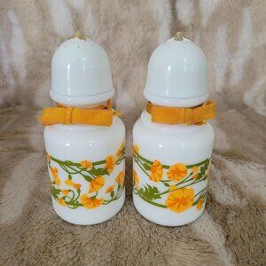Vintage Avon Milk Glass Salt & Pepper Shakers 1960-70 Retro Green Orange