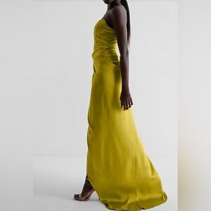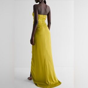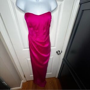 Express Women’s 2 Pink Satin Strapless Corset Gown Dress XS Formal Slit