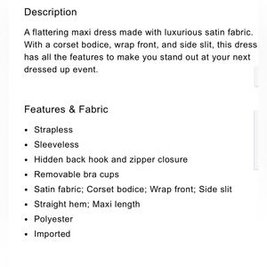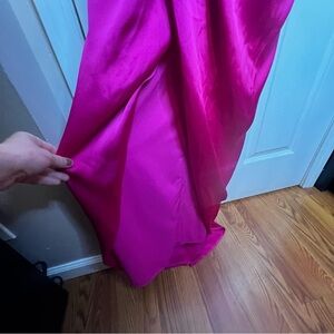 This Express Women’s Hot Pink Strapless Satin Gown Dress in XS is a formal and elegant option for various occasions. The sweetheart neckline, long dress length, and A-Line style give it a classic and timeless look. The dress features a side slit, empire waist, and stretch fabric for a comfortable fit. Made from polyester satin, it is machine washable and perfect for year-round wear. The vibrant pink color and Barbie-inspired character make it a stand-out choice for travel, weddings, parties, or formal events.