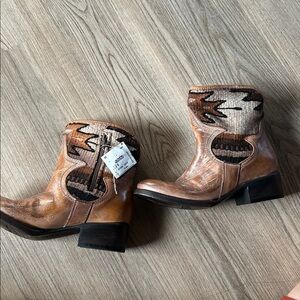 ✨Stunning Freebird Shine ankle boots. Aztec pattern. Naturally distressed leather. Side zipper. Size 6, New .. never used. Please view all photos for details.