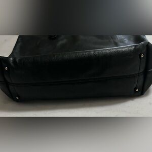 This elegant black leather tote bag is perfect for any occasion. Its sleek design and durable material make it a must-have accessory.