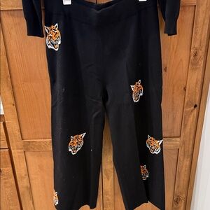 Chic black sweater featuring bold tiger motifs. Ideal for a standout style.