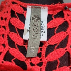 XCVI Women's Long Sleeve High Low 100% Cotton Crochet Shirt Size XL Red Boho