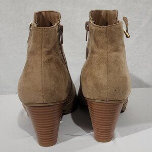 Women's Suede Heeled Ankle Boots Stack-Heel Western Booties Sz 9 Tan rnd toe zip