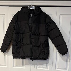 Stay warm and stylish with this sleek black puffer jacket, perfect for any cold weather outing.