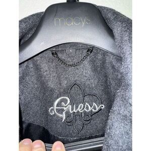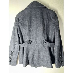 Guess Womens Medium Dark Gray Wool Blend Lined Short Collared Fitted Pea Coat. Condition is Pre-owned. Shipped with USPS Ground Advantage.