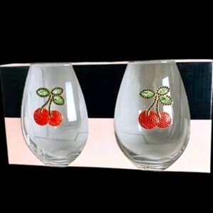 2pc Rachel Zoe Lemon Jeweled Rhinestone Stemless Wine Glass Cocktail Set NEW