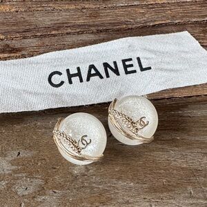 I bought these buttons at a store in Paris, hoping to make some jewelry out of them. The buttons are approximately 3/4 of an inch wide and have a shiny glittery moon button with a gold swish and possibly a wheat strand that holds the double cc.