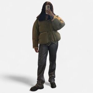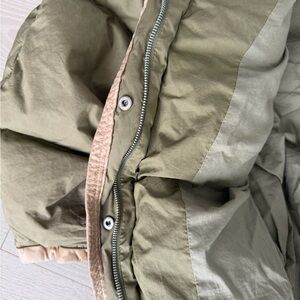 Rare Isabel Marant green puffer jacket with adjustable drawstrings and detachable hood (very cozy). Tagged size 0 but intentionally oversized — fits closer to a modern M/L. Super warm and perfect for winter layering. Shows some visible wear on the sleeves and inner hem (see photos), reflected in price.