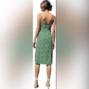 This Women's Summer Floral Print Spaghetti Strap Split Thigh Cami Midi Dress in size Small is perfect for the warmer seasons. With its sleeveless design, floral pattern, and green color, this dress exudes a sun-dress style that is both stylish and comfortable. The split thigh detail adds a trendy touch, while the spaghetti straps provide a flattering silhouette. Whether you're heading out for a summer picnic or a casual day out, this dress is sure to make you look and feel your best.