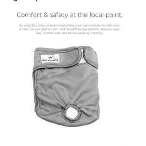 Set of three Pet Parents dog diapers in black, gray, and brown. Comfortable and secure fit for your pet. New in box. Factory vacuum sealed.
