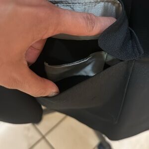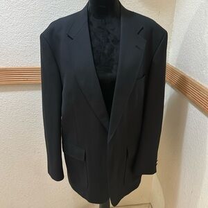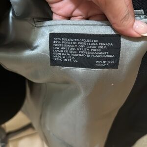 Beautiful Stafford Black blazer jacket with gold button on sleeves and bottom of jacket with plenty of pockets as seen in pictures! Last two picture show minor distressing on collar left side mostly likely due to button pinning from previous owner. Otherwise in good condition and will discount this item.