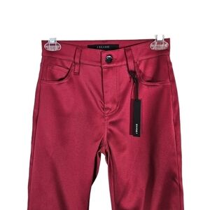 J Brand Valentina Satin Pants. The flared silhouette is revamped in J Brand's Opium ruby red satin. Cut with an exaggerated inseam, pair them with your favorite heels. New with tags, no flaws.
