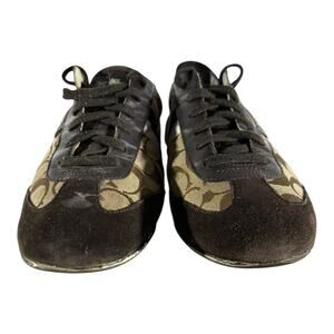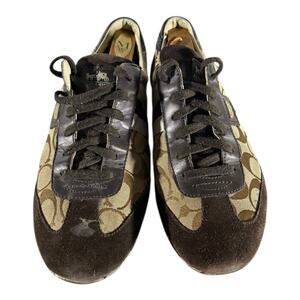 Coach Joss Sneakers Lace Up Signature Canvas Suede Brown Tan Size 11M Women’s