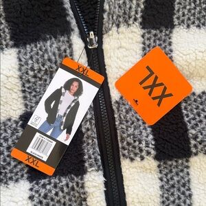 NWT Plaid Hooded Sherpa Jacket in Black and White XXL Weatherproof