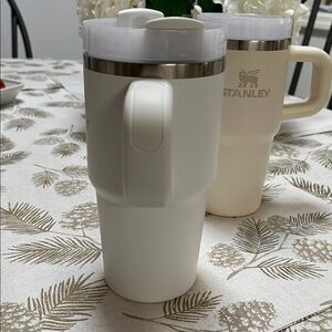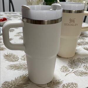 Stylish Stanley mugs for your drinks. Cream and white design. Perfect for home or travel.