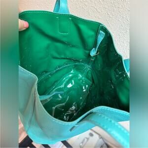 The color is a RARE Turquoise It also has a PVC plastic liner Like new condition no flaws !