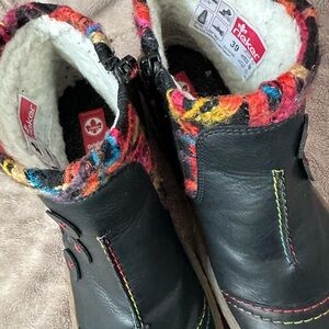 Rieker Felicitas Black Boots with Colorful Trim women’s size 8 (39)