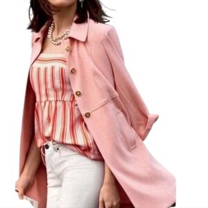 CAbi Take 5 Topper Longline Jacket Size XS Peachy Pink Pockets 3/4 Sleeve Soft