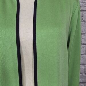 Exclusively Misook Cardigan Green Black Trim Open Front Long Sleeve Womens Sz M