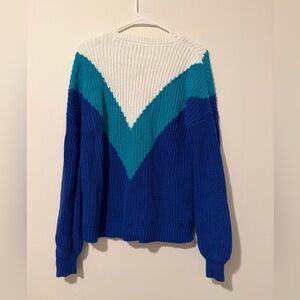 Time and Tru Colorblock Chunky Knit Sweater • Blue Teal White Chevron
