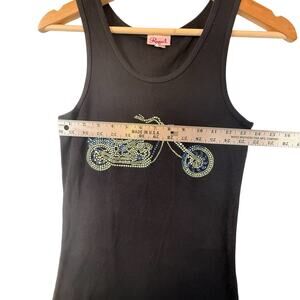 VTG Black Ribbed Tank RHINESTONE Motorcycle TrampStamp SIZE LARGE Raquel Biker