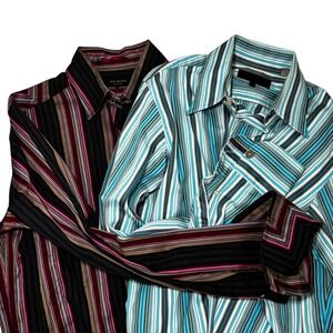2 Ted Baker Dress Shirts Size 3 (m) Multicolor Stripe Long Sleeve French Cuffs