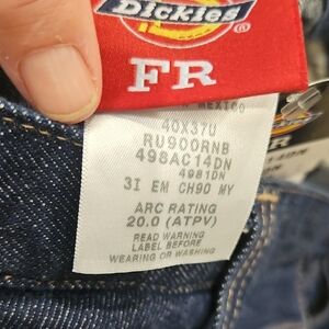 Classic blue denim fire resistant jeans by Dickies. Size 40X37 Ideal for everyday style. New with Tags