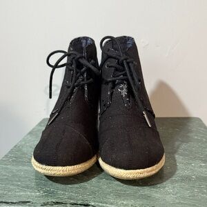 TOMS Canvas Black Wedge Ankle Boots