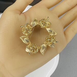 Vintage Signed SARAH COVENTRY Gold T Flower Holiday Wreath Brooch Pendant 4523