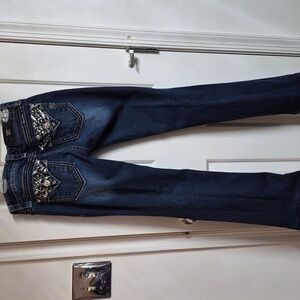 Miss Me Dark Blue Jeans with Black & Silver Accents