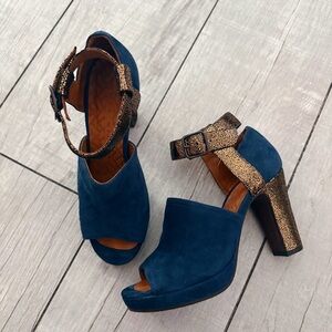 CHIE MIHARA Elegant Blue and Gold Women's Heels