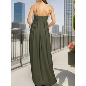 Timeless elegance with a touch of effortless glamour. The “Jessica” gown in moss green from Sachin & Babi is crafted in a lustrous pleated fabric that drapes beautifully. Featuring delicate spaghetti straps, a softly gathered bust, and a fluid wide-leg silhouette, this gown evokes romantic charm perfect for evening soirées or special occasions.