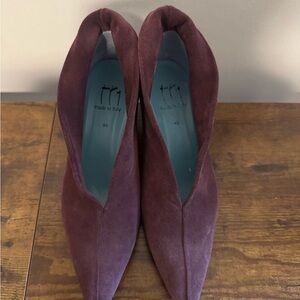 ❤️🔥❤️🔥 Thierry Rabotin Narrow Stamped Purple Suede Slip On Heeled Shoes