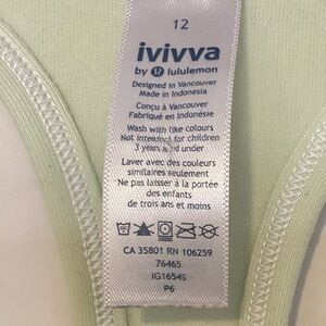 ๐2/$20 Lululemon Ivivva Sz 12 Pastel Green Tank Like New