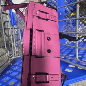 Bold fuchsia shoulder bag with sleek buckle accents. Perfect for adding flair to any outfit.