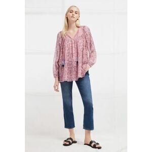 French Connection Pink Savana Sheer Folk Top Size 4US