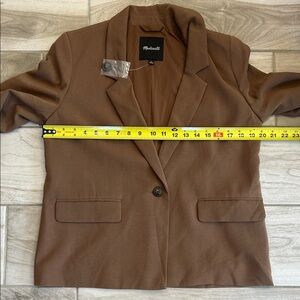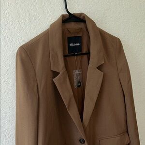 Chic and versatile blazer. Single-button closure. The color doesn’t photograph too well no matter the lighting I try but it’s a beautiful olive color with a brown undertone.