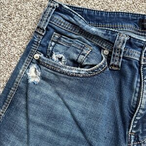 Condition: Used Good Condition. Detailed Pics for a couple small spots that are barely noticeable and a couple flaws in the denim. Front Pockets do have some tears/rips. Not sure if those are supposed to be there or not??