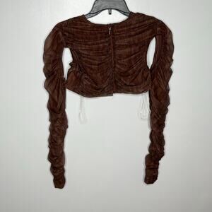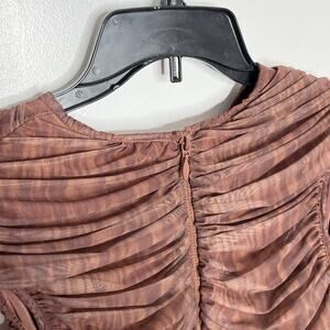House Of Cb Womens Blythe Mesh Top Large Brown Ruched Cutout Cropped